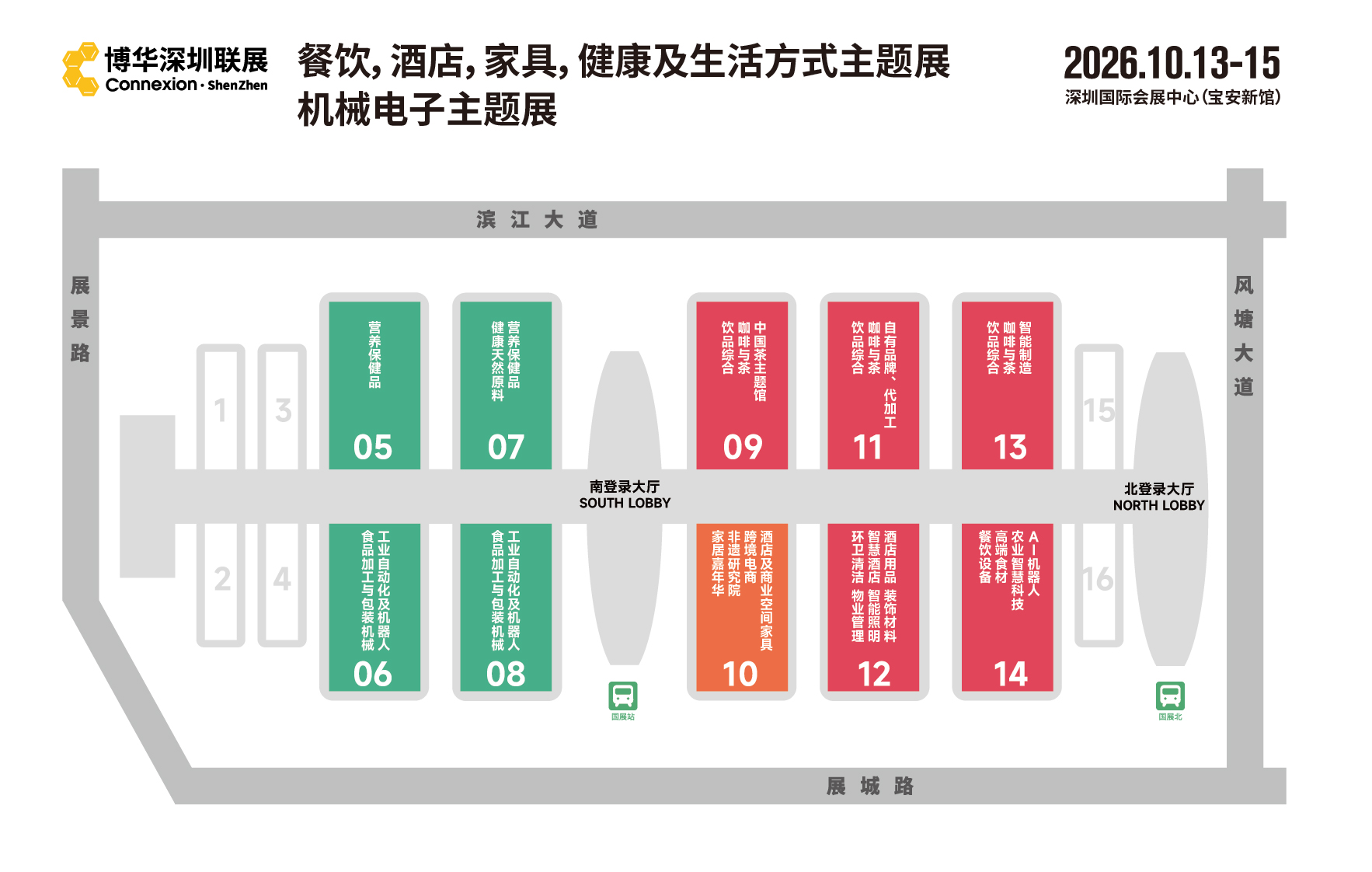 2026年博华深圳联展启用深圳国际会展中心10个展馆,分两大主题展十大板块呈现。(点击平面图放大查看)