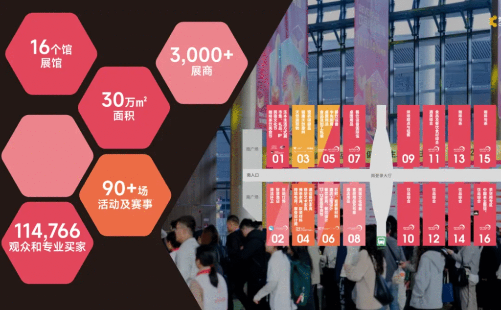 - 联餐饮食品 | 咖啡茶饮 – 2025深圳国际酒店及餐饮业博览会:覆盖咖啡与茶、饮品综合、食品及餐饮食材综合、餐饮设备、桌面用品、烘焙甜点及轻餐、酒类综合、礼品及生活方式八大核心板块,全面呈现从原料供应、智能设备到终端消费的全链条创新成果。