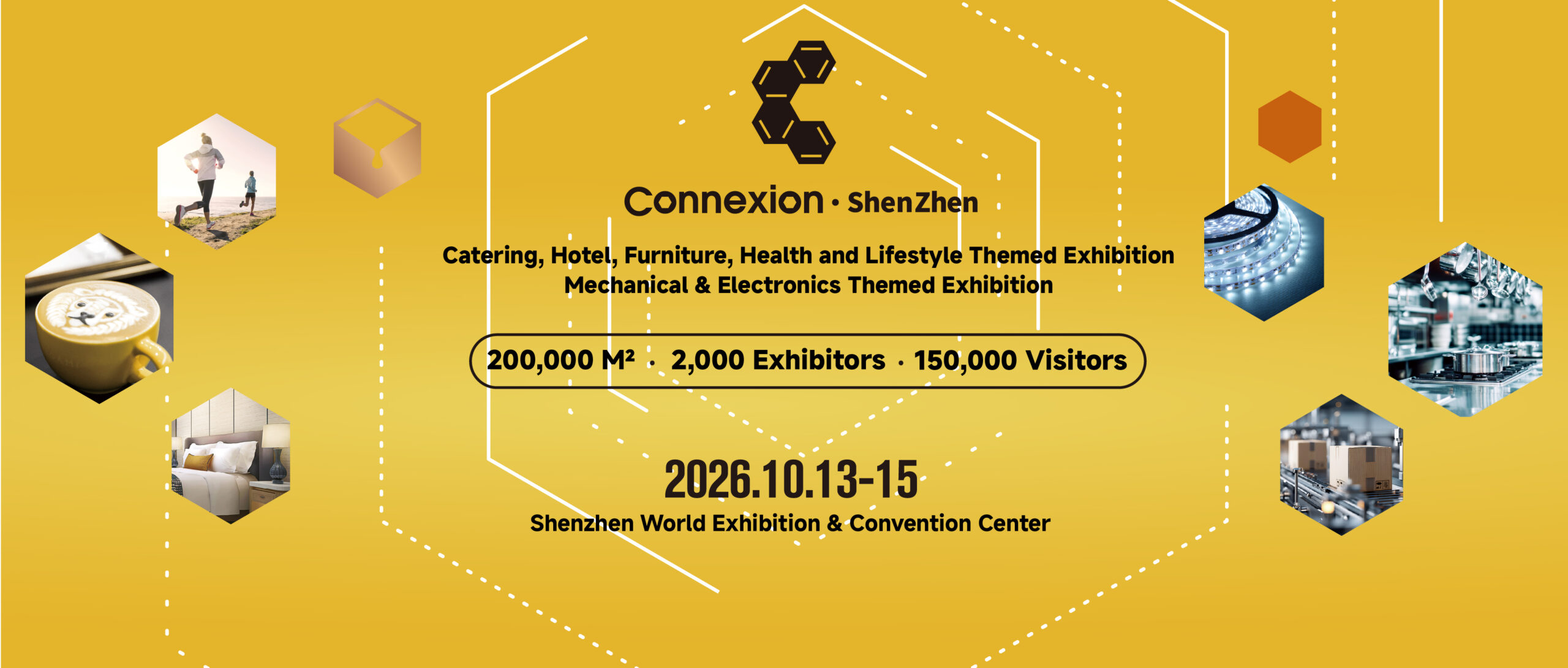 The 4th Connexion ShenZhen is South China’s flagship exhibition integrating catering, hospitality, furniture, health, lifestyle, and mechanical & electronics industries. The 4th edition takes place in October 2026 at Shenzhen World Exhibition & Convention Center.