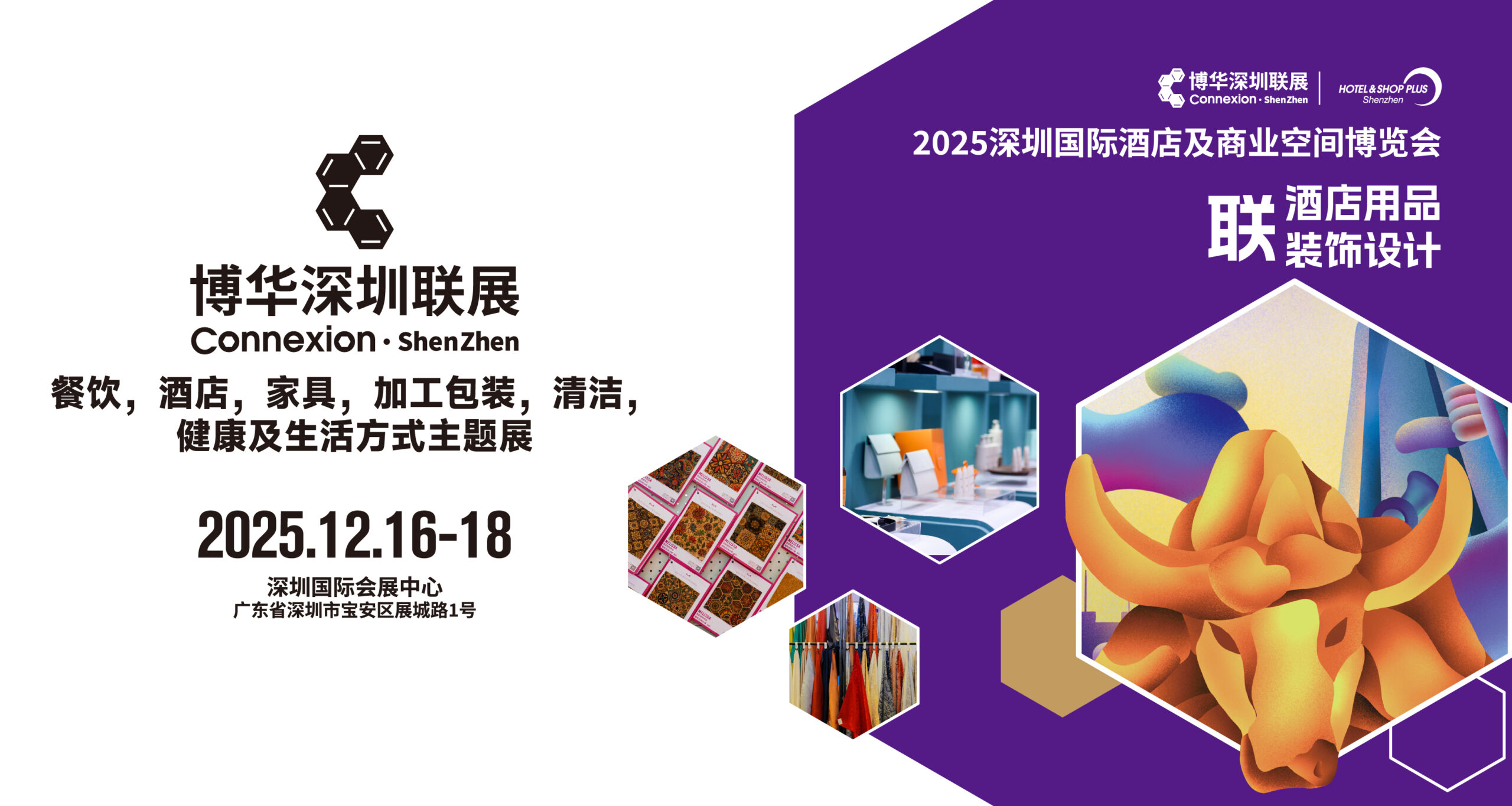 Hotel & Shop Plus深圳国际酒店及商业空间博览会作为博华深圳联展的重要组成, 汇集了建筑装饰、酒店布草、智慧酒店、文创餐饮、连锁加盟等多元领域的优质展 商。展会通过酒店筹建采购、空间设计、智慧零售等专业论坛,深入探讨如何构建酒 旅行业新质生产力,吸引了包括设计机构、酒店集团、商业地产、投资方等在内的专 业买家群体。展会立足粤港澳大湾区这一战略要地,辐射全球市场,致力于打造集投 资筹建、运营采购于一体的全产业链平台,推动酒店及商业空间生态圈的跨界融合与 创新发展。